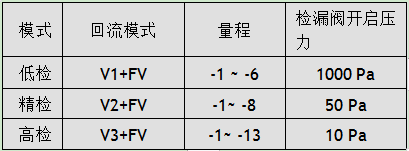 3、通過“系統設定”界面顯示的檢漏模式可以判斷檢漏量程。